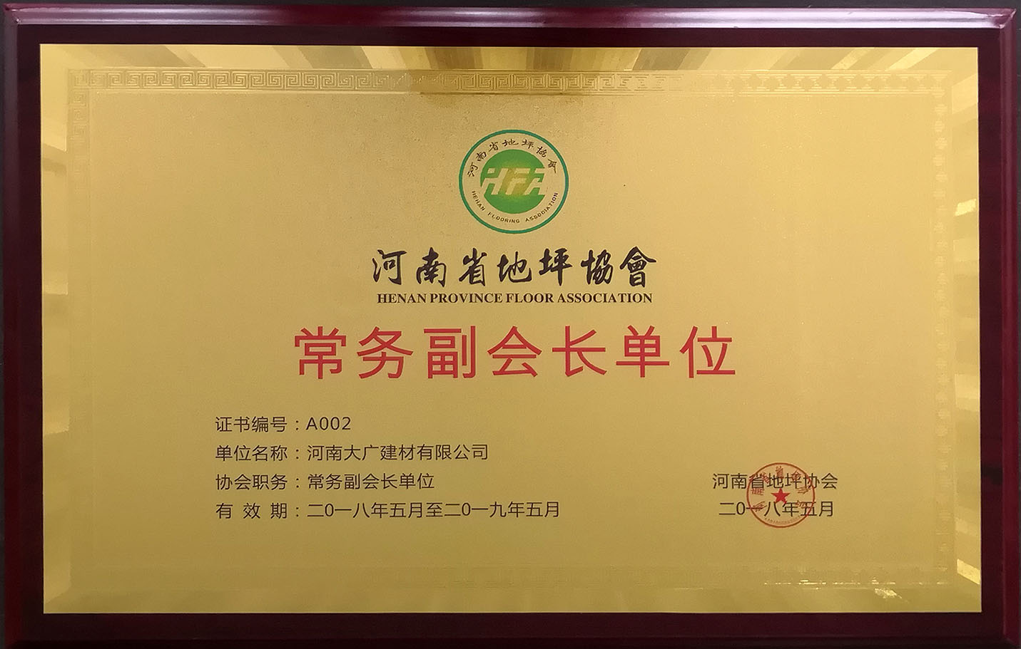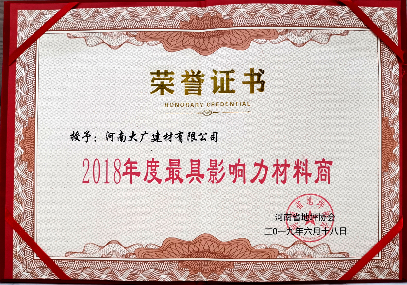 榮獲:河南省地坪協(xié)會(huì)*具影響力材料商 稱(chēng)號(hào)